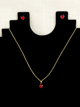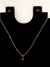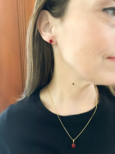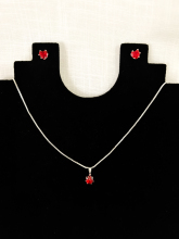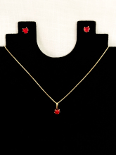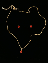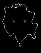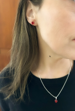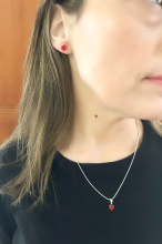 Conjunto de Brinco e Colar de Coração Vermelho - 6mm
